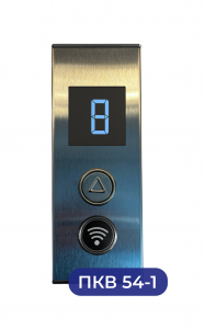 Пост кнопочный вызывной представляет собой накладкую панель с аппаратурой коммутационной (кнопки с подсветкой) со стрелкой вверх и вниз, считывателем RFID меток Mifare, жгутом (длина согласно заказа) и дисплеем этажным (собственного производства 3,4’) на котором отображается номер этажа и направление движения кабины. Прендназначен для вызова лифтовой кабины с посадочной площадки.